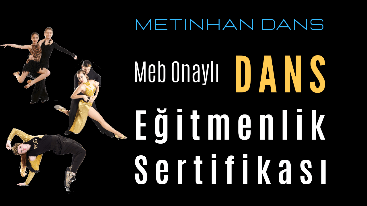 Milli Eğitim Bakanlığı Onaylı Usta Dans Öğretici ve Eğitmenlik Sertifkası Bir Aylık Sürede Verilmektedir. Dans Eğitmeni Olmak İçin Kursumuza Gelip Kaydınızı Yaptırabilirsiniz. Dans Sertifikası Nasıl ve Nerden Hangi Kurumdan Alınır. Kayıt İçin Öğrenim Belgesi ve Kimlik Fotokopisi Ayrıca İki Adet Vesikalık Fotoğraf ve Ödeme Makbuzu Gerekmektedir. Aynı Anda Birden Fazla Sertifika Başvursu Yapabilirsiniz Hangi Sertifikayı Alacağınız Belirtmelisiniz. T.C MEB Özel Metinhan Dans Kursu Olarak Serbest Stil Dansları (HipHop, Breaking, Street Jazz, Popping, Locking, Krumping, House Dance, Dancehall, Disco) Latin Amerika Dansları ve Salon Dansları ( Rumba, Cha Cha Cha, Jive, Samba, Paso Doble, Foxtrot, Tango, QuickStep, Waltz, Viennese Waltz) Kültürel Danslar (Oryantal, Zeybek, Sirtaki, Flamenko, Hint Dansları ) Arjantin Tango ( Milonga Nuevo Tango Vals Tango Bay ve Bayan Tekniği) Swing Dansları ( Lindy Hop, Blues, Balboa, Boogie Woogi) Sosyal Latin Dansları ( Salsa, Bachata, Mambo, Sosyal Cha Cha Cha, Merenge, Rueda, Kizomba ) Eğitmenlik Sertifikası Verilmektedir.