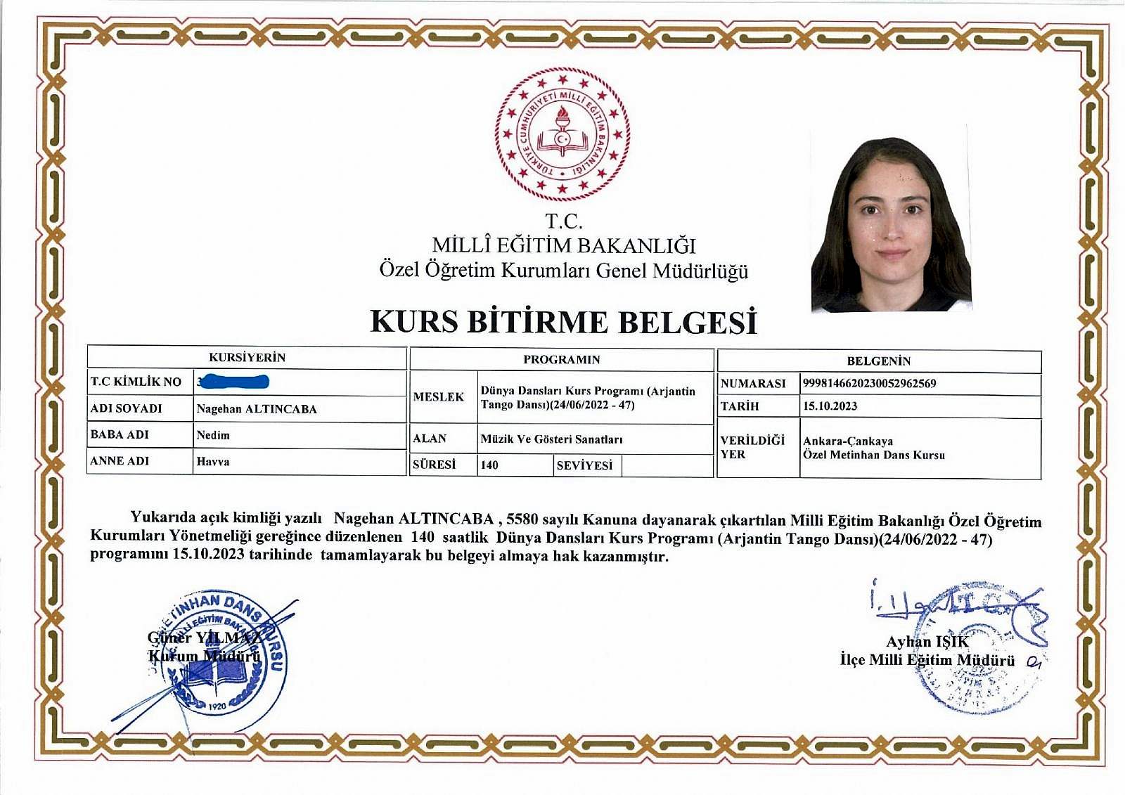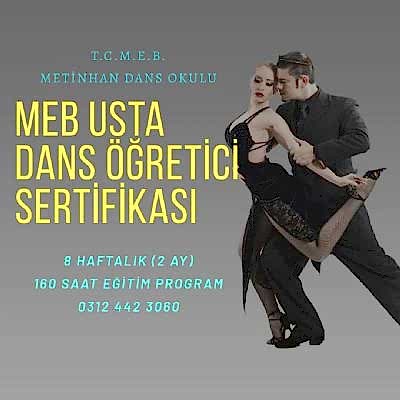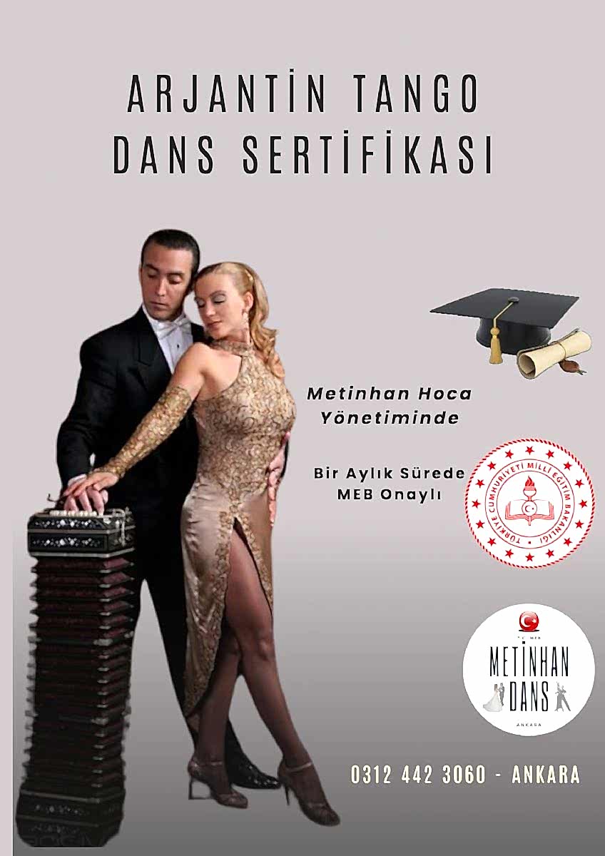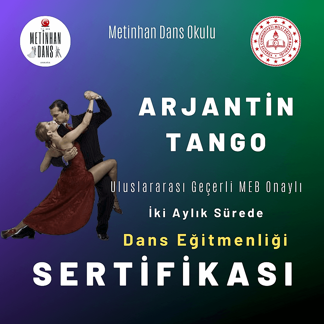 MEB Onaylı Sertifikalar: Metinhan Dans Okulunda, Milli Eğitim Bakanlığı (MEB) onaylı tango eğitmenlik sertifikaları sunmaktadır. Bu tür sertifikalar, Türkiye'de resmi olarak tango öğretmenliği yapmanıza olanak sağlar.