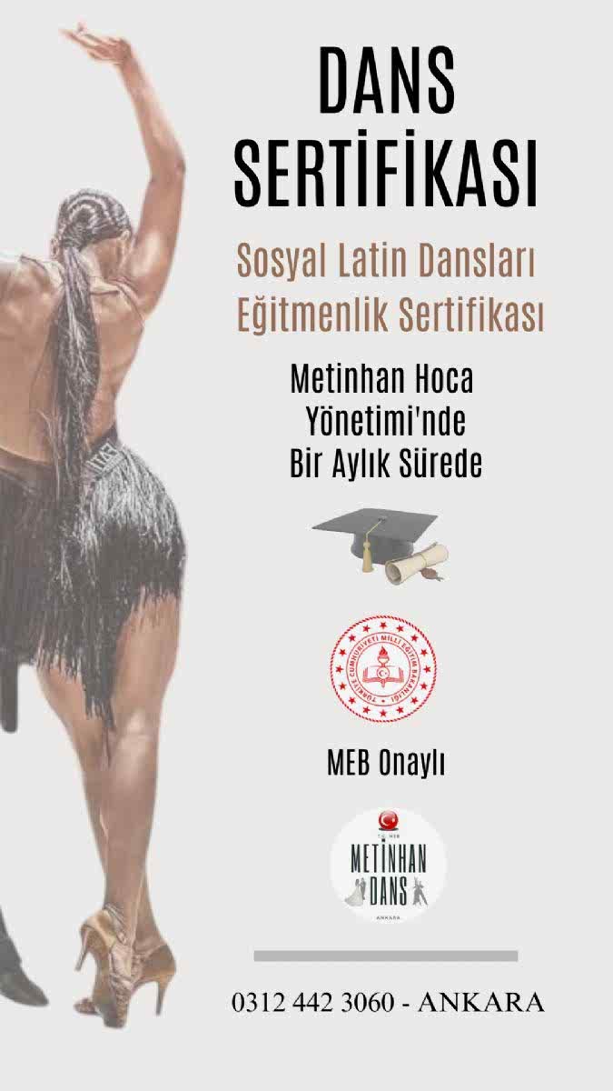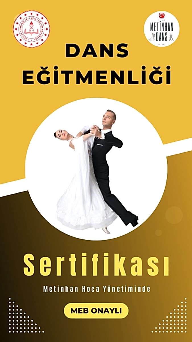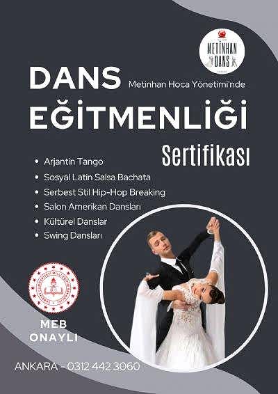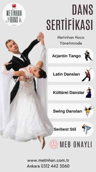 Metinhan Dans Okulu, MEB onaylı Arjantin Tango, Sosyal Latin ve Salon Amerikan Dansları Kültürel Danslar Swing Dansları Serbest Stil Dansları eğitmenlik sertifikaları sunan bir okul olarak öne çıkmaktadır. MEB Onaylı Dans Sertifikası, dans eğitmeni olmak ve profesyonel olarak dans eğitimi vermek için gereklidir. Eğer bu alanda bir kariyer hedefliyorsanız, MEB onaylı bir dans sertifikası almak, size önemli avantajlar sağlar.