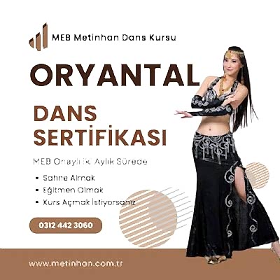 Meb Onaylı Dans Sertifikası Sahne Sanatı Müzik ve Dans Alanında Kariyerinizde Adeta Diploma Niteliğinde Bir Öneme Sahip Olacaktır. Bu Sertifika En Üst Kademede Master (Usta) Dans Öğretici Eğitmenlik Sertifikasıdır. Bu Sertifikayı Almak İçin İlkokul Mezunu Olmanız Yeterlidir. Uluslararsı Geçerli Olduğu İçin Yabancı Uyruklu Dansçılar da Başvurabiliyor. Bu Dans Sertifkası Yani Kurs Bitirme Belgesi ile MEB'e Bağlı Dans Kursu Açabilir.ve Dans Kurslarında Eğitmen Olabilirsiniz. Yeni Başlayanlara 8 Aylık Programa Tabi Tutuyoruz Şayet Daha Önce Dans Etmiş ve Hala Devam Ediyorsa veya Dans Eğitmenliği Yapmış yada Halen Dans Eğitmeni ise Bakanlıkça Hazırlanmış Programın Müfredatına Göre Bir Aylık Uygulama ve Teknik Destek Program Sonunda Sertifkasını Almaya Hak Kazanır..
