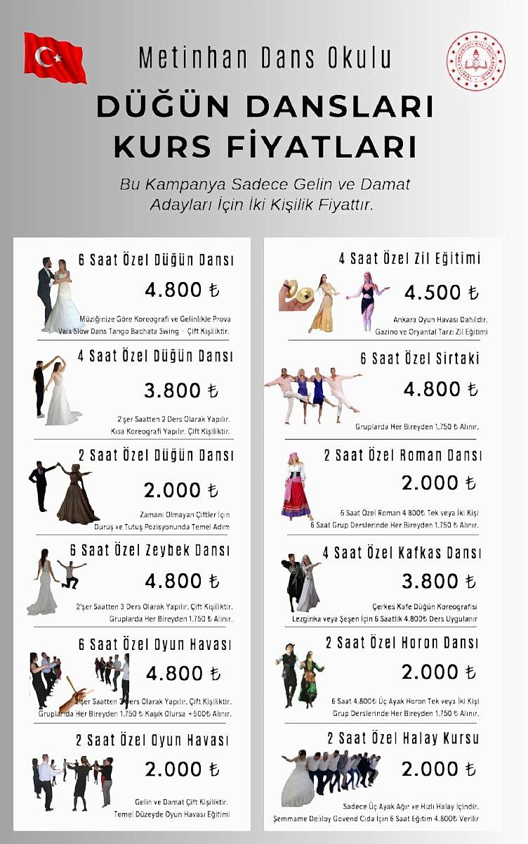 Dans Kursumuzda Viyana Vals Modern Vals Sosyal Vals ve Düğün Vals Dansı Eğitimi Verilmektedir. Vals Dansı Ders Fiyatları Aşağıdaki Gibidir.